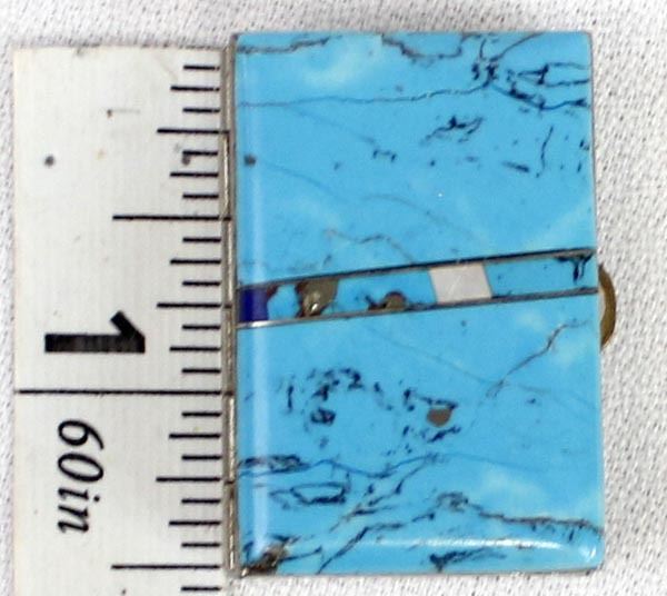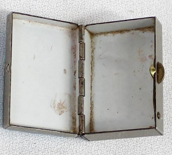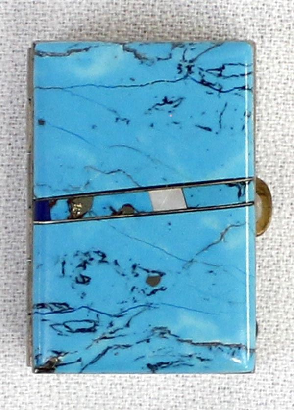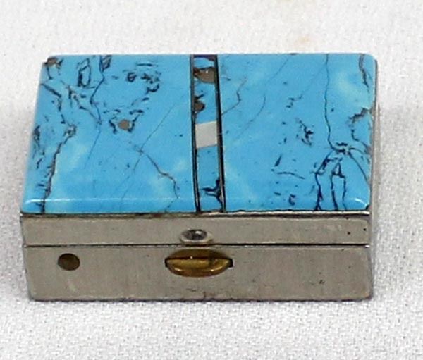 Silvertone and Stone Inlay Pillbox, measures 1.75'' x 1.5''