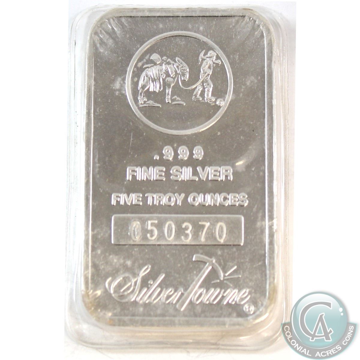 Silvertowne 5oz .999 Fine Silver Bar Sealed in Plastic (TAX Exempt)