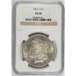 1889-S MORGAN SILVER DOLLAR, NGC AU-55
