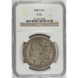 1888-S MORGAN SILVER DOLLAR, NGC F/VF 15 SEMI-KEY