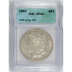 1893 MORGAN DOLLAR ICG EF-45 VAM 4, TOP 100