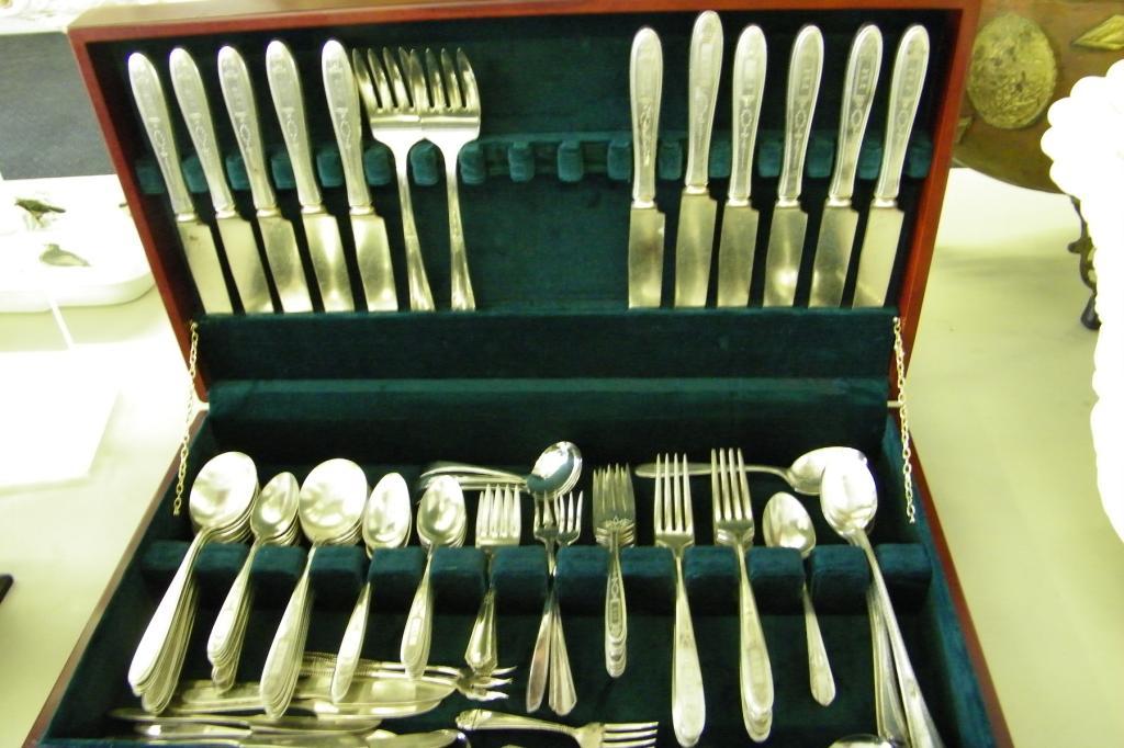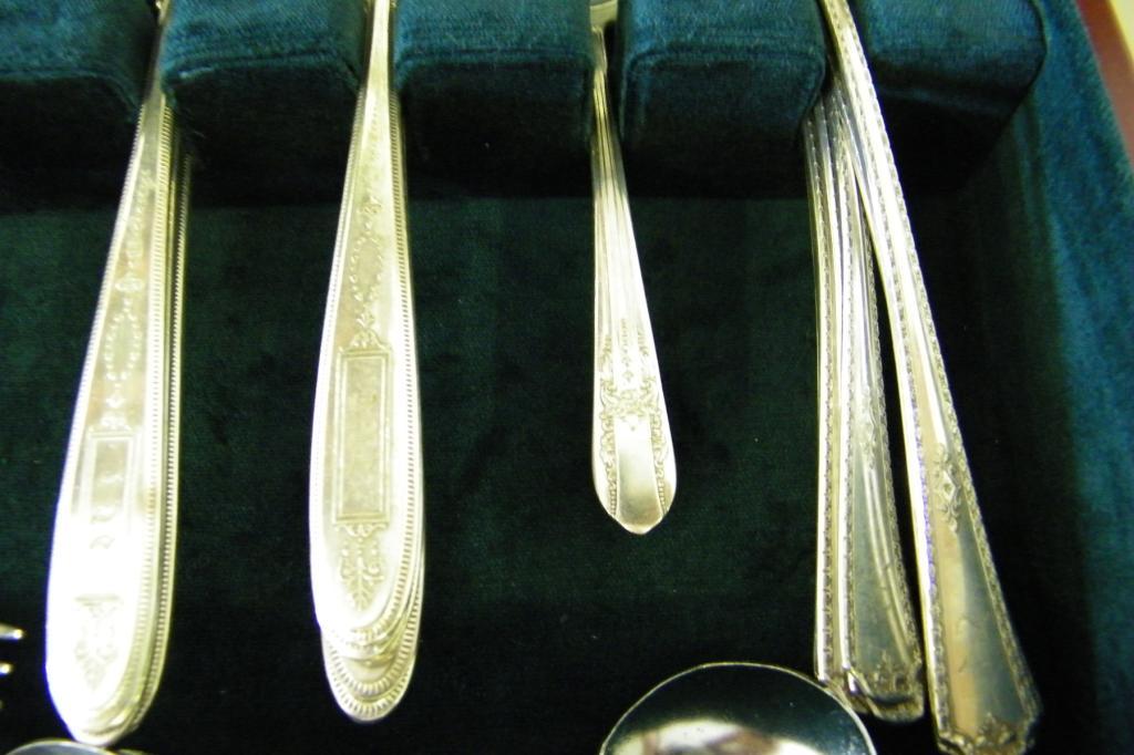 Silverware Case w/Misc. Silver Plate - SEE PICTURES