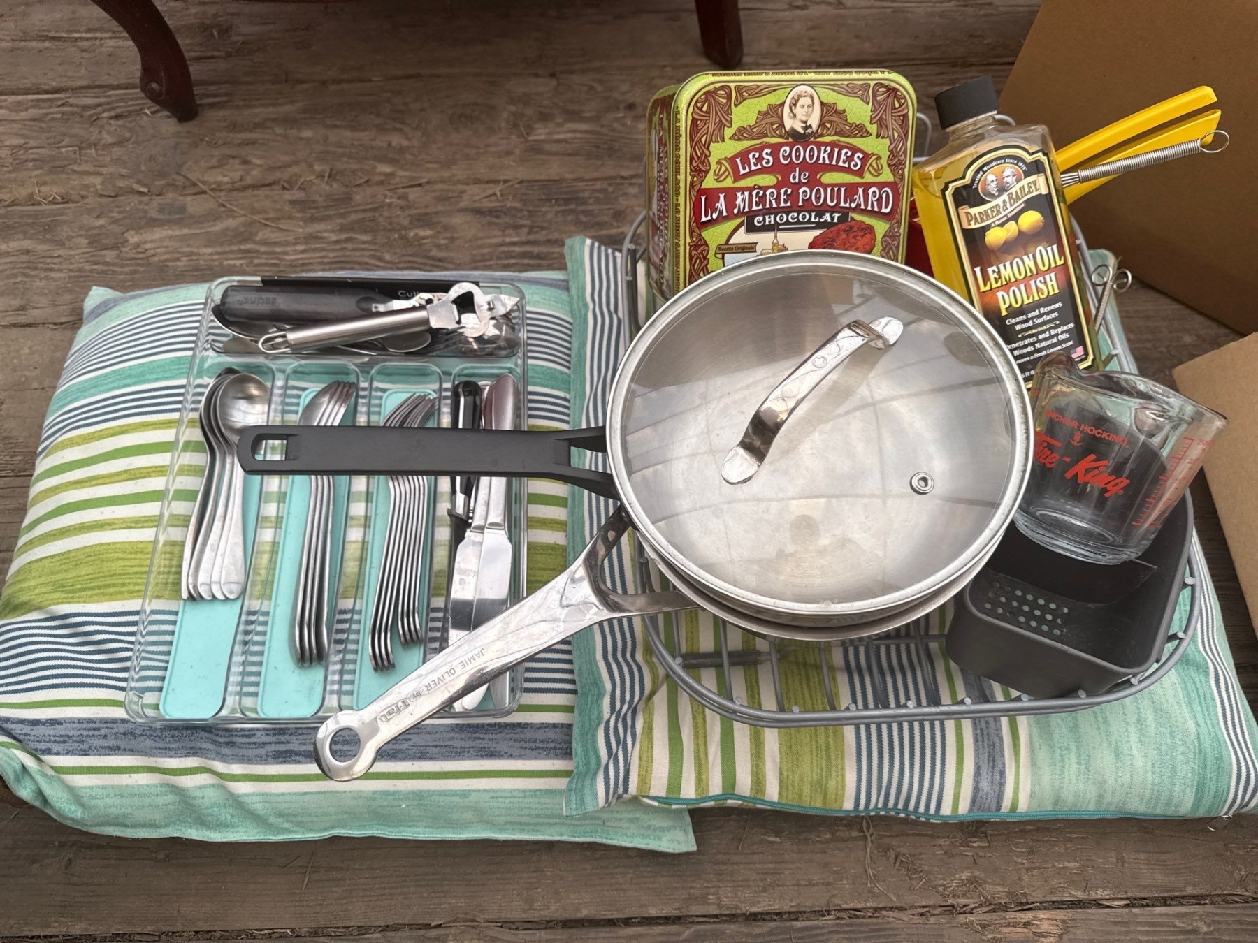 Silverware & Kitchen Goodies Bundle w/ Frying Pan & Measuring Pyrex Cup
