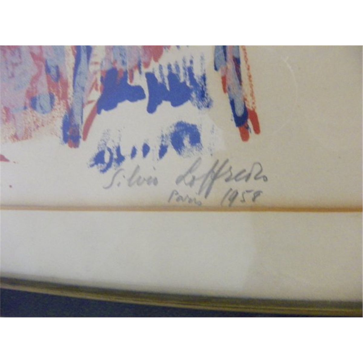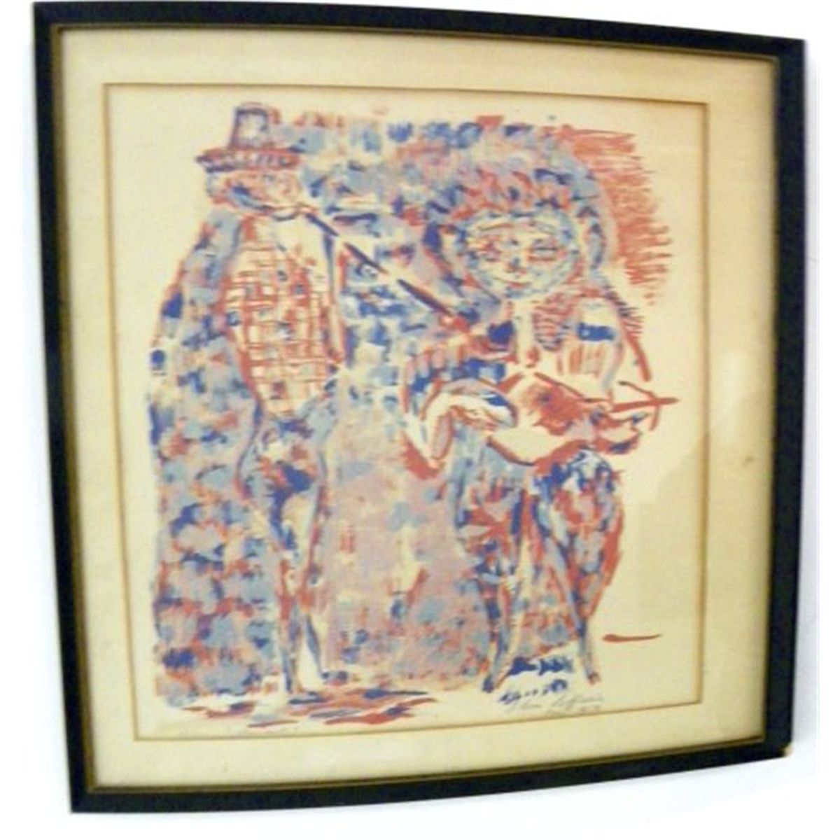 Silvio Loffredo (1920-Italy) "Musicanti" colored  lithograph, 20 1/2" x 16 1/2", pencil signed and  dated Paris, 1958 lower right, titled and numbered  43/200 lower left, framed 25" x 21" Please read our terms of sale.