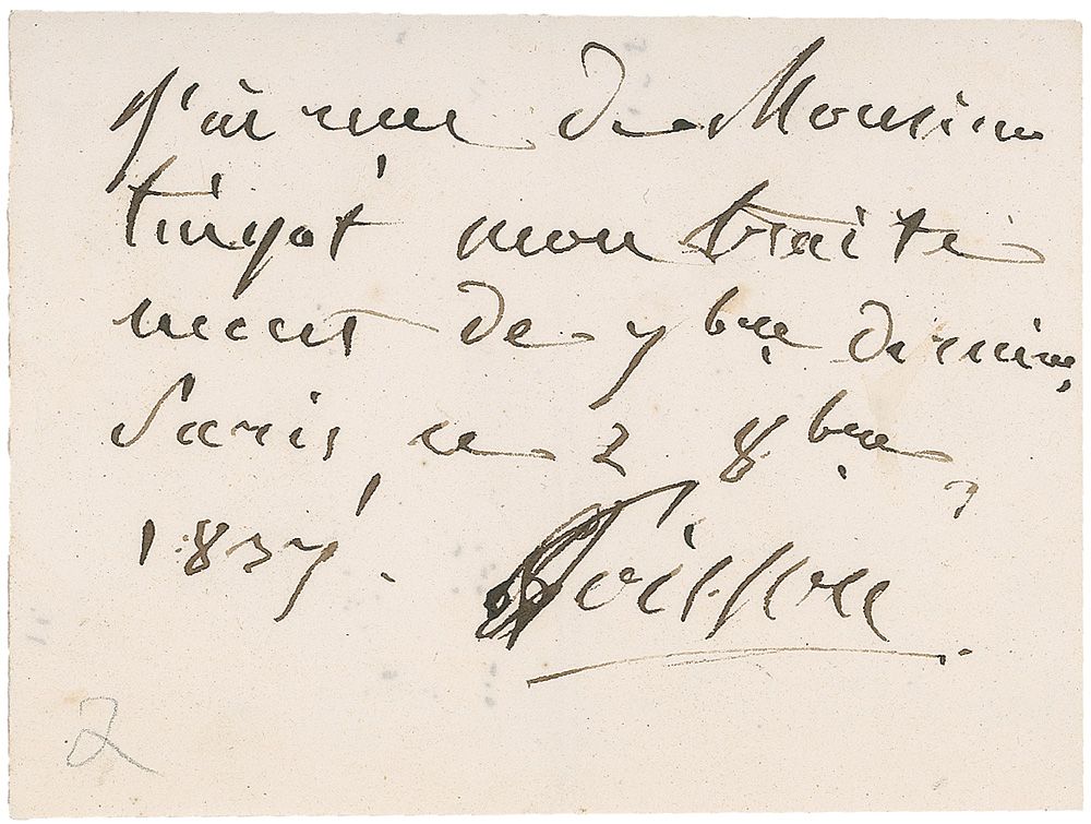 French mathematician and physicist (1781–1840). ANS in French, signed “Poisson,” one page, 4.75 x 3.5, 1837. Boldly penned untranslated note from Poisson. In fine condition, with a central vertical fold passing through first letter of signature and a small pencil notation to lower left.