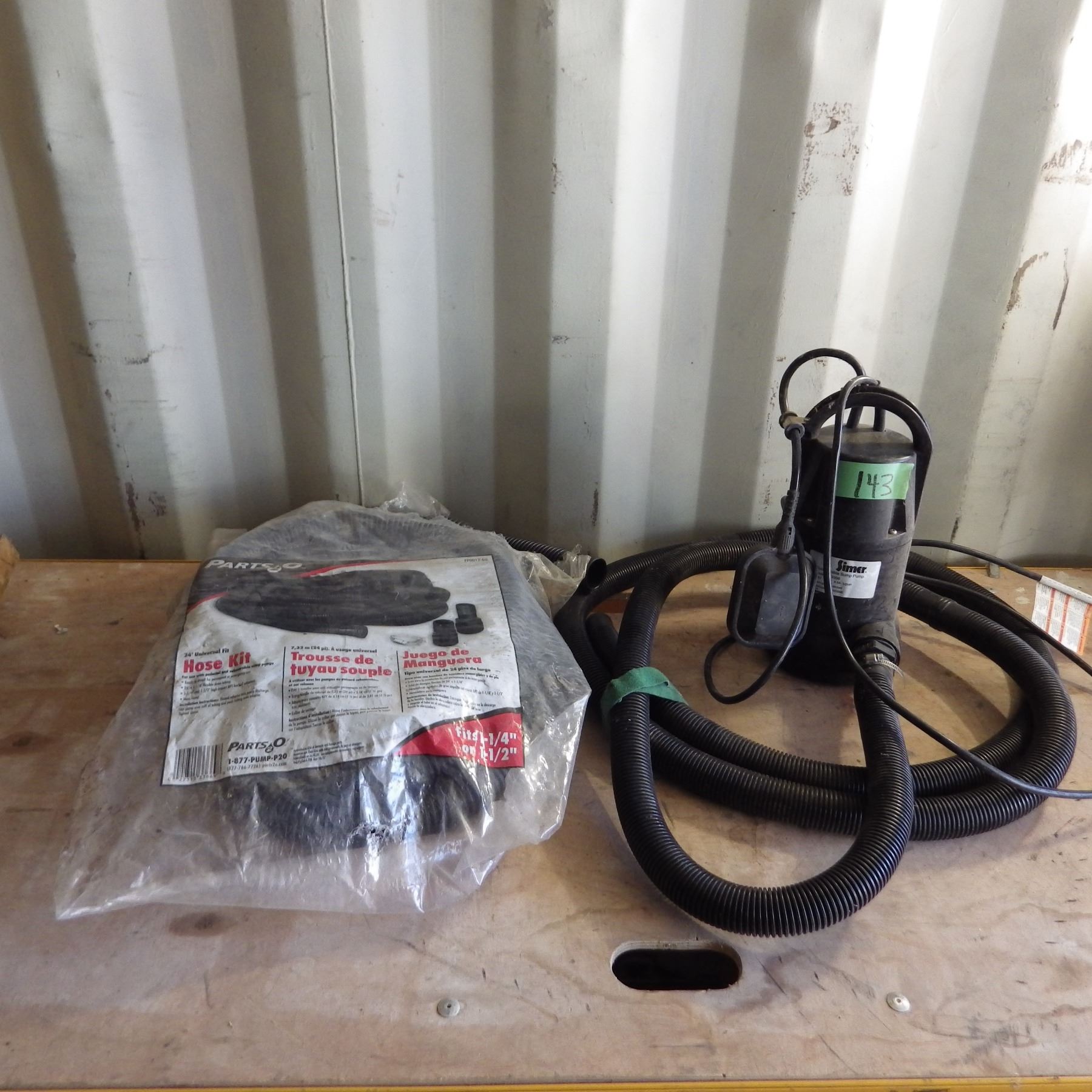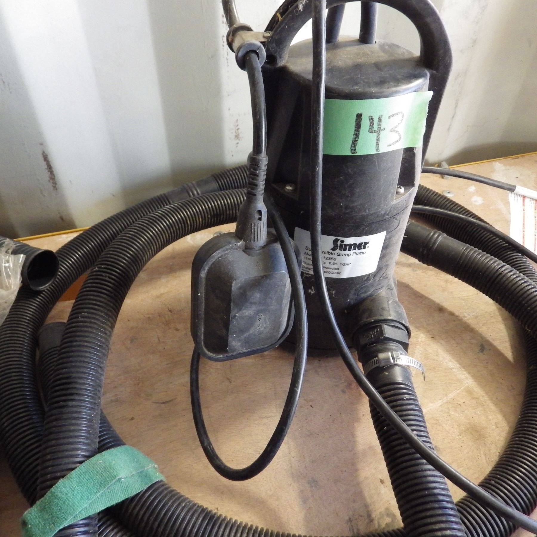 Simer 1/2 HP submersible sump pump with extra length of hose