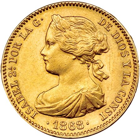 In order to comply with the current spanish legislation buyers should bear in mind that the export of coins over 100 years old require the issuance of an Export License by the Ministry of Culture, regardless of the country of destination. This process normally takes between 4 to 8 weeks.