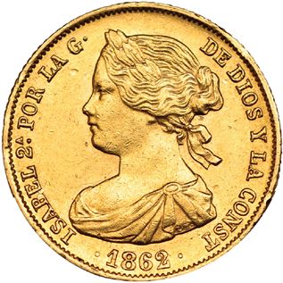 In order to comply with the current spanish legislation buyers should bear in mind that the export of coins over 100 years old require the issuance of an Export License by the Ministry of Culture, regardless of the country of destination. This process normally takes between 4 to 8 weeks.