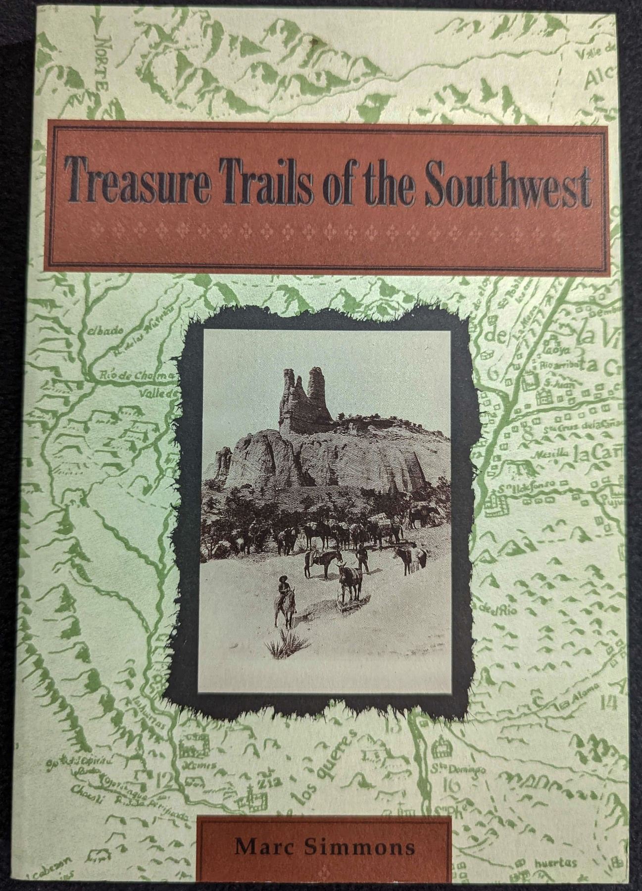 Simmons, Marc. TREASURE TRAILS OF THE SOUTHWEST. University of New Mexico Press, Albuquerque. 1984. 12mo. xiii, (1), 163, (7) pages. Original pictorial card covers. First edition. Illustrated. Bibliography. Fine. This book is a collection of 27 tales of treasure hoards and lost mines. An excellent book often overlooked that is more factual than most. Includes the Lost Adams Diggings. Has 'Selected References' where many lost treasure books don't. Lot weight: 0 lbs 9oz. Subject(s): Buried Treasure, Lost Mines.