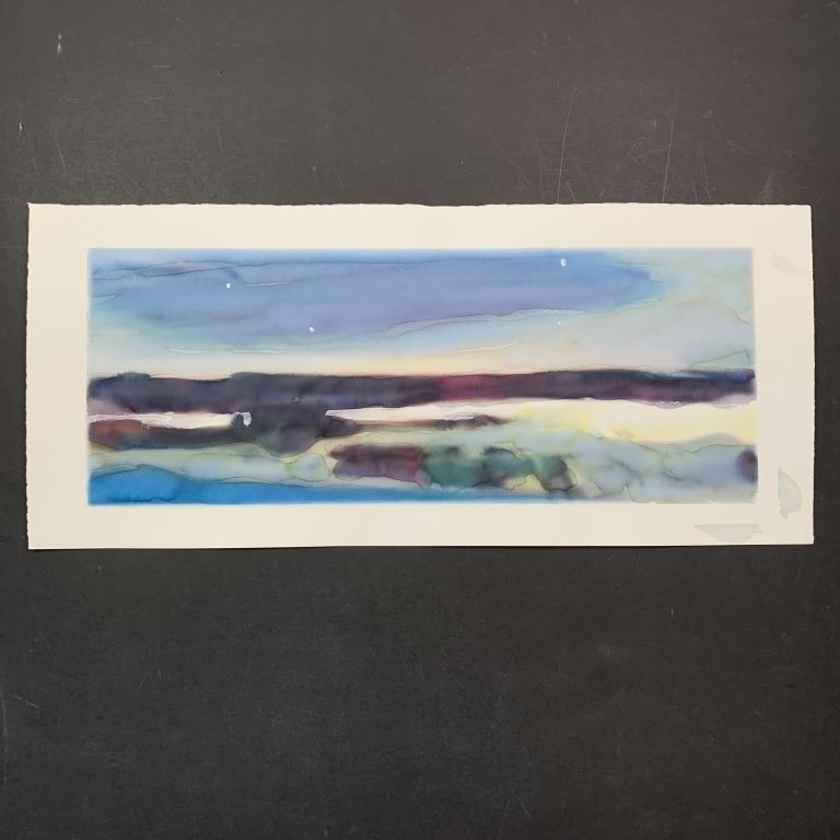 Simon Andrews, Untitled, Original Watercolor on Paper. An abstract view of a landscape done in multiple colors. This piece is signed on the back in pencil and is in excellent condition.