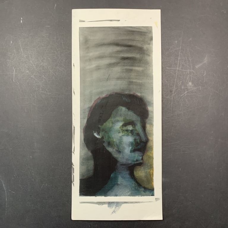 Simon Andrews, Untitled, Original Watercolor on Paper. An abstract view of a portrait of a person. This piece is signed on the back in pencil and is in excellent condition.