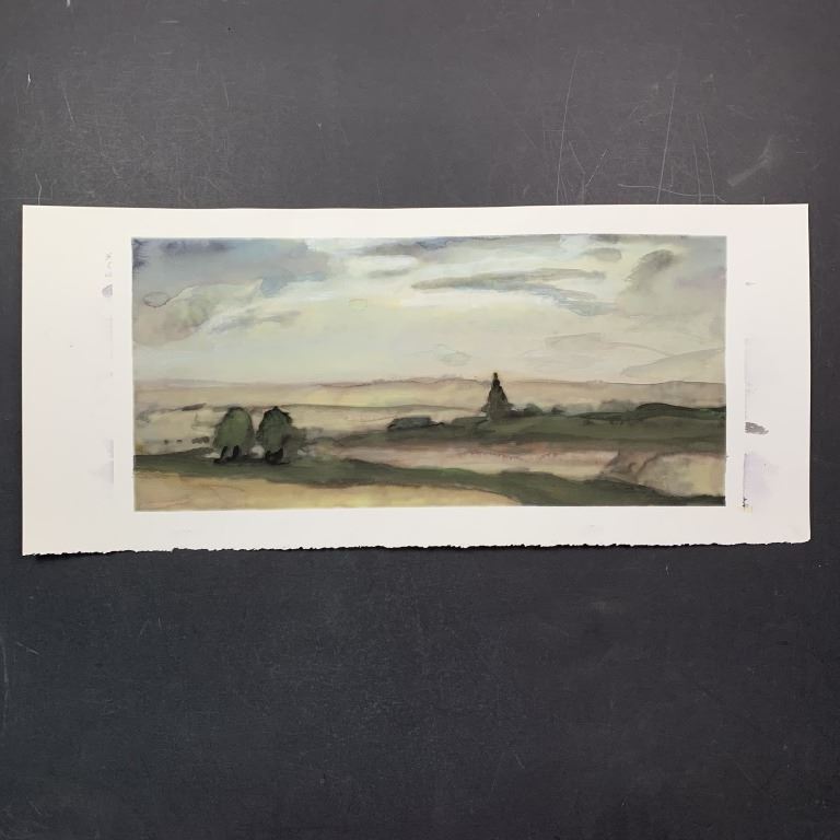 Simon Andrews, Untitled, Original Watercolor on Paper. An abstract view of a landscape done in multiple colors. This piece is signed on the back in pencil and is in excellent condition.