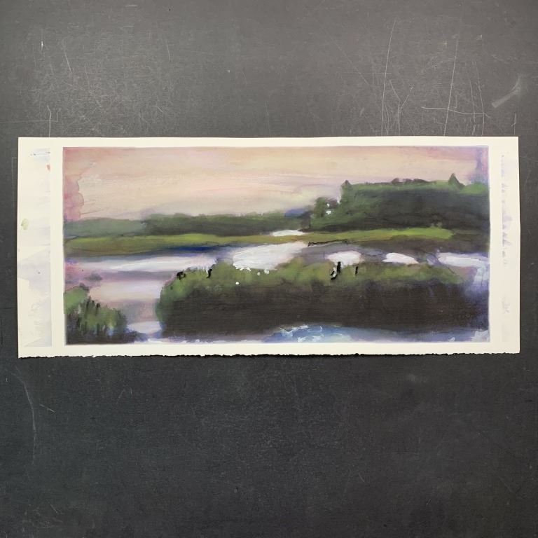 Simon Andrews, Untitled, Original Watercolor on Paper. An abstract view of a landscape done in multiple colors. This piece is signed on the back in pencil and is in excellent condition.