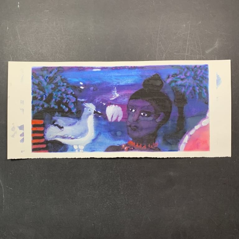 Simon Andrews, Untitled, Original Watercolor on Paper. An abstract view of a person with a bird. This piece is signed on the back in pencil and is in excellent condition.