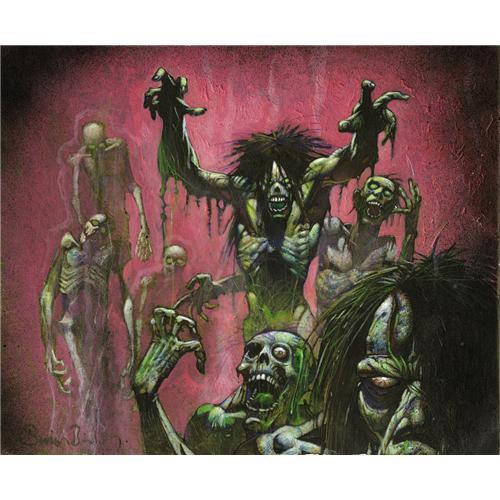 <B>Simon Bisley - Magic: The Gathering Ninth Edition Trading Card "Horror of Horrors" Illustration Original Art (Wizards of the Coast, 2005).</B></I> These rotten-eyed, green-tongued creatures from the Underworld were not spewed out of the bowels of hell, they were dredged up from the incredibly imaginative mind and talented hand of Simon Bisley. Painted in acrylic on a sheet of heavy illustration board, this art has an image area of 12" x 10" and is in Excellent condition. Signed by Simon Bisley at the lower right.