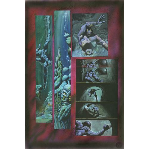 <B>Simon Bisley and Kevin Eastman - Melting Pot Book 3 Page 14 Original Art (Kitchen Sink, 1994).</B></I> This underwater sequence from the <B>Melting Pot</B></I> saga was given a full-blown painted finish by the amazing Simon Bisley. It spotlights beautiful figure work by one of the best in the "biz." This page measures 14" x 20" and is in Excellent condition.