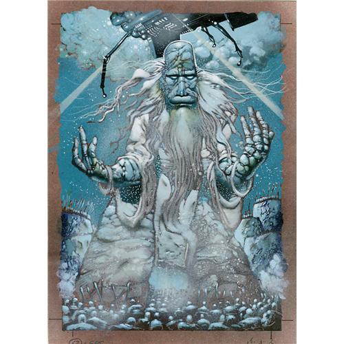 <B>Simon Bisley and Kevin Eastman - Melting Pot Book Four, page 62 Original Art (Kitchen Sink, 1994).</B></I> The Almighty Lord makes this appearance at the end of the four-part <B>Melting Pot</B></I> storyline. Simon Bisley's sophisticated painting techniques ensure that Kevin Eastman's designs glow with vibrant colors and life-like textural effects. This irreverent look at a reverent being has an image area of 9.25" x 12.75", and the art is in Excellent condition.