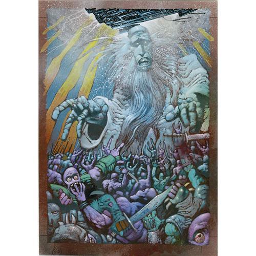 <B>Simon Bisley and Kevin Eastman - Melting Pot Book Four, page 63 Original Art (Kitchen Sink, 1994).</B></I> For the finale of the four-part <B>Melting Pot</B></I> storyline, Kevin Eastman and Simon Bisley bring God into the picture to wrap things up. This ethereal image maintains the full-blooded treatment of the amazing Simon Bisley, painting over Kevin Eastman's pencils. The grand staging of this gigantic chaos-filled moment is truly mind-boggling. The image area measures 9" x 12.75" and the art is in Excellent condition.