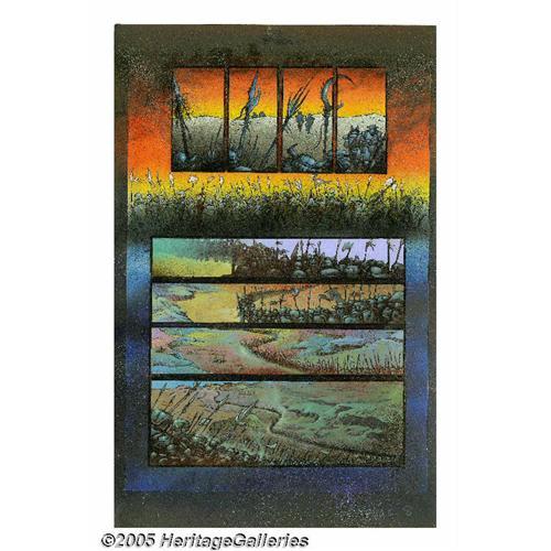 <B>Simon Bisley and Kevin Eastman - Melting Pot, Book One, page 8 Original Art (Kitchen Sink, 1994).</B></I> Two killers join an army of blood-thirsty soldiers making their yearly journey to the fortress of Shantarr, in this eighth page of the first issue of " "<B>Melting Pot</B></I>, Kevin Eastman and Simon Bisley's epic four-issue series. Kevin Eastman pencils, and Simon Bisley paints, this formidable multi-paneled page. The art has an image area of 13.75"" x 21.5"" and is in Excellent condition. <BR><BR><B>Important notice:</B> Heritage usually auctions material at the rate of 200-250 lots per hour. On some occasions eBay Live bid software or the Internet may not be able to keep up with the pace of the auction. We recommend placing a realistic absentee bid now as insurance to avoid disappointment. Occasionally the auctioneer may eliminate or reject an eBay Live bid, and the auctioneer may also reopen a lot after the close of the eBay live bidding (usually because we missed an audience bid), and may reject your bid even if it shows you as the winning bidder. By bidding via eBay Live, you agree that Heritage may award the lot to another bidder at its sole discretion under the circumstances described above or any other reasonable circumstances. Since eBay bids are not shown to us until we open the lot on the floor, we treat those bids just like floor bids. In most cases the floor responds before the eBay bid is presented to us, due to Internet lag time, so for consistency we have made it a policy that floor bids are always considered first over tie eBay live bids. Also please note that all Heritage lots purchased through eBay Live carry a 20% Buyer's Premium. Please make sure you read the Terms and Conditions before you bid. This lot is being auctioned in conjunction with a live floor auction by Heritage Galleries & Auctioneers. All final auction and invoice information will be supplied by Heritage Galleries & Auctioneers, and all other information should be consid