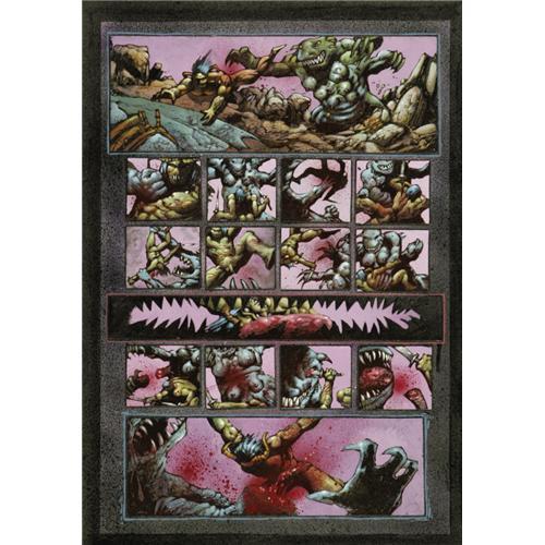 <B>Simon Bisley and Kevin Eastman - Melting Pot, Book Three, page 6 Original Art (Kitchen Sink, 1994).</B></I> The evil Lord Tyler lashes out at a grotesque monstrosity, spewing blood and extremities all over this berserk page! This explosive scenario is given the full-blooded treatment by the amazing Simon Bisley, who paints over Kevin Eastman pencils. With an image area measuring 14" x 19.5" the art is in Excellent condition.