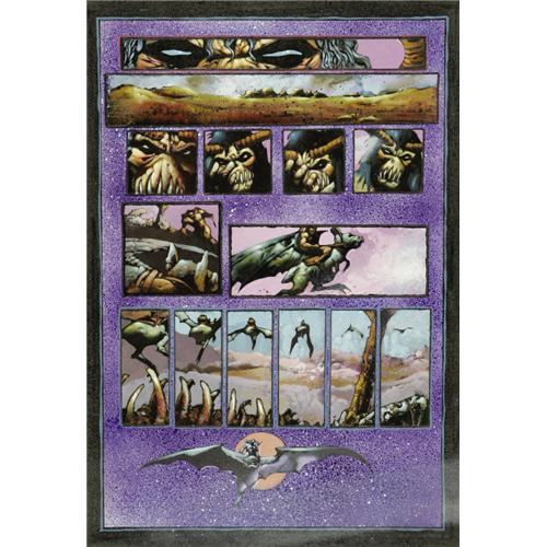 <B>Simon Bisley and Kevin Eastman - Melting Pot, Book Three, page 10 Original Art (Kitchen Sink, 1994).</B></I> With a strangled tug on his leather harness, Lord Tyler guides his leather-winged transport high into the sky above Shantarr. This pestilent page, painted by Simon Bisley over Kevin Eastman's pencils, is a moody masterpiece rich in purples and blues. The art has an image area of 14" x 19.5" and is in Excellent condition.