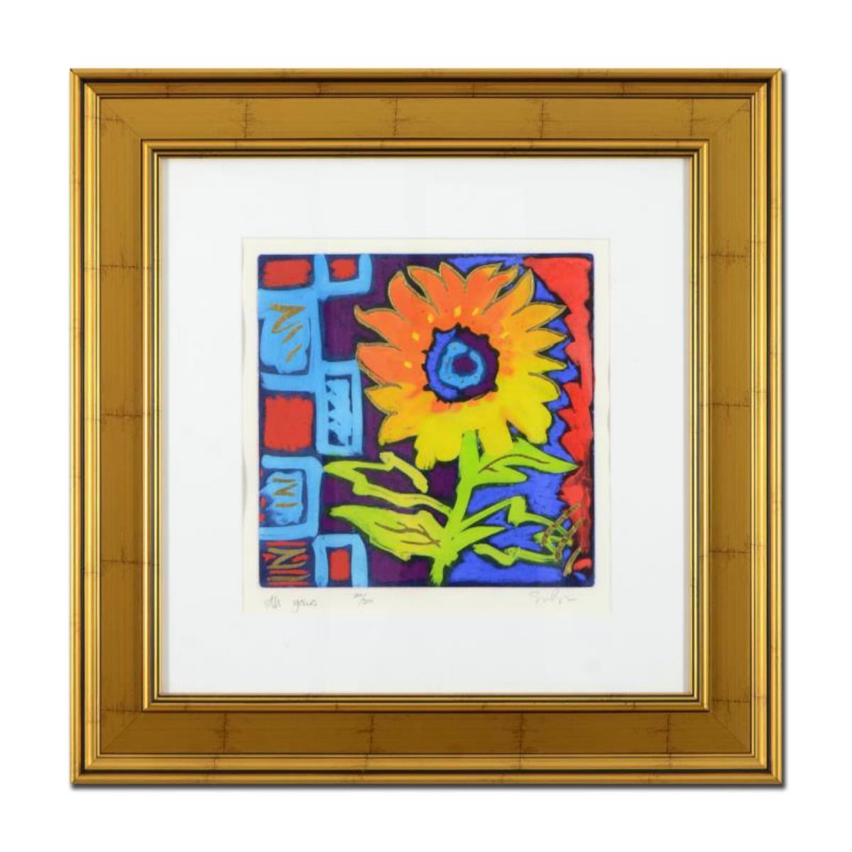 "All Yours" is a hand colored limited edition etching on rag paper by Simon Bull, numbered and hand signed by the artist. Includes Letter of Authenticity. Measures approx. 24.5" x 24.5" (framed), 12" x 12" (image). There is minor wear on the corners and edges of the frame. Reference #: 237900.