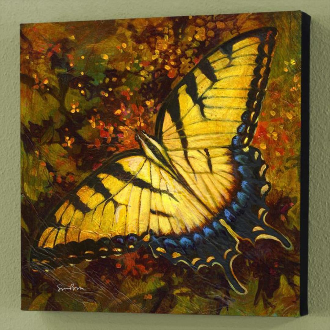 "Nectar" is a numbered limited edition giclee on canvas by Simon Bull bearing the artist's authorized signature. This piece comes gallery wrapped and includes a Letter of Authenticity. Measures approx. 12" x 12" x 1.5" (image). This item requires special handling and may have a longer than usual turnaround.