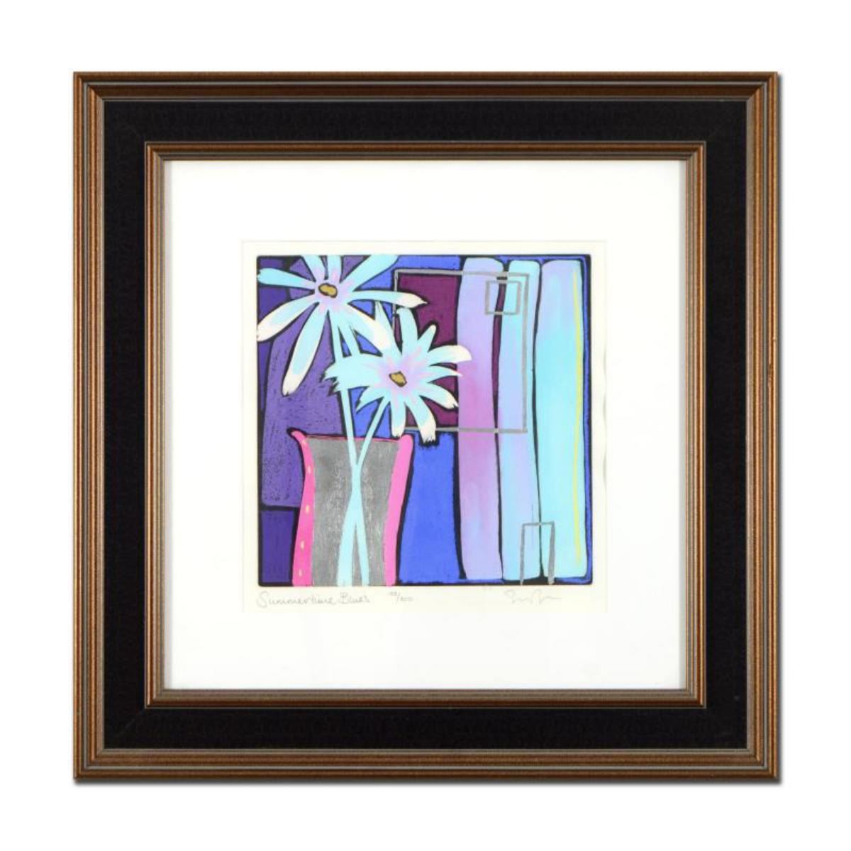 "Summertime Blues" is a hand colored limited edition etching on rag paper by Simon Bull, numbered and hand signed by the artist. Includes Letter of Authenticity. Measures approx. 24.5" x 24.5" (framed), 12" x 12" (image). There is minor wear on the corners and edges of the frame. Reference #: 237897.