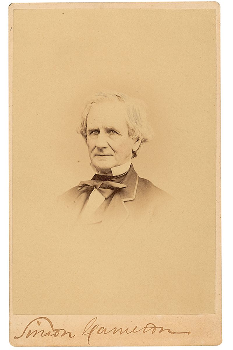 Lincoln’s controversial first secretary of war (1799–1889). Original 2.5 x 4 carte-de-visite bust portrait of Cameron, by Henszey & Co. of Philadelphia, signed in the lower border in black ink. In fine condition, with a couple trivial surface marks.
