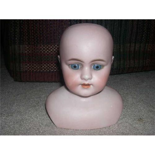 Germany 1170 or 1178 S H 9 D It is 6 1/4" tall and 5" across from shoulder to shoulder. The width is 3 1/4". An old auburn wig is included. She has set in blue glass eys. She has the pierced ears. She has an open mouth with 4 teeth. She does have a few scratches on her face. There is an edge chip to the back shoulderplate but of course this would be not show when on a body. It's smooth so it may have come out of the factory this way. This would make a nice size doll. She is from a smoke free environment. Buyer to pay $15 for shipping, insurance and handling. Thanks for viewing.