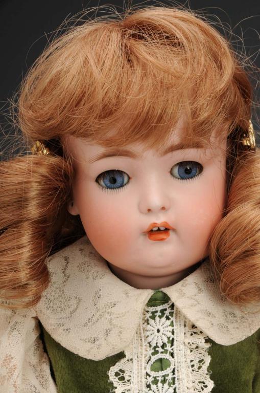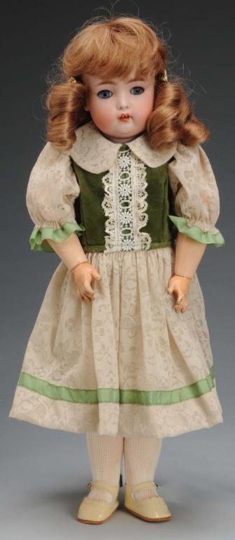 Description Bisque socket head incised "1299 Simon & Halbig S&H" with smiling mouth with protruding upper lip, two glass upper teeth, blue glass sleep eyes, painted lower lashes, original silk upper lashes, and a fully-jointed body stamped "Germany" on torso. Wears a newer wig and has been appropriately redressed. Condition (Very Good). Size 18 - 1/2" T.