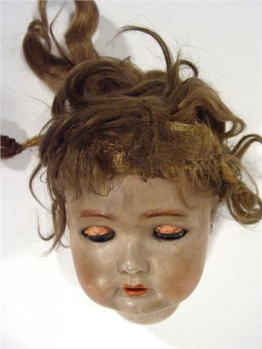 Simon Halbig bisque headed doll with open and close eyes and open mouth, the head measures 15cm high