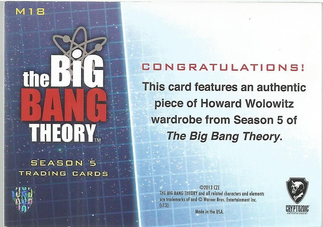 Wolowitz rare wardrobe chase card played by Simon Helberg on the show