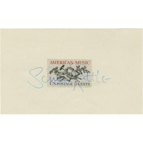<B>Simon Rattle Autograph.</B></I> A 3" x 5" card, with a five-cent commemorative postage stamp affixed, signed by the celebrated conductor of the Berlin Philharmonic in blue ink. Rattle's autograph extends across the face of the stamp and is large and clean. In Excellent condition.<BR><BR><b>Shipping:</b> Flat Material, Small (<a target="_blank" href="http://www.heritageauctions.com/common/shipping.php">view shipping information</a>)