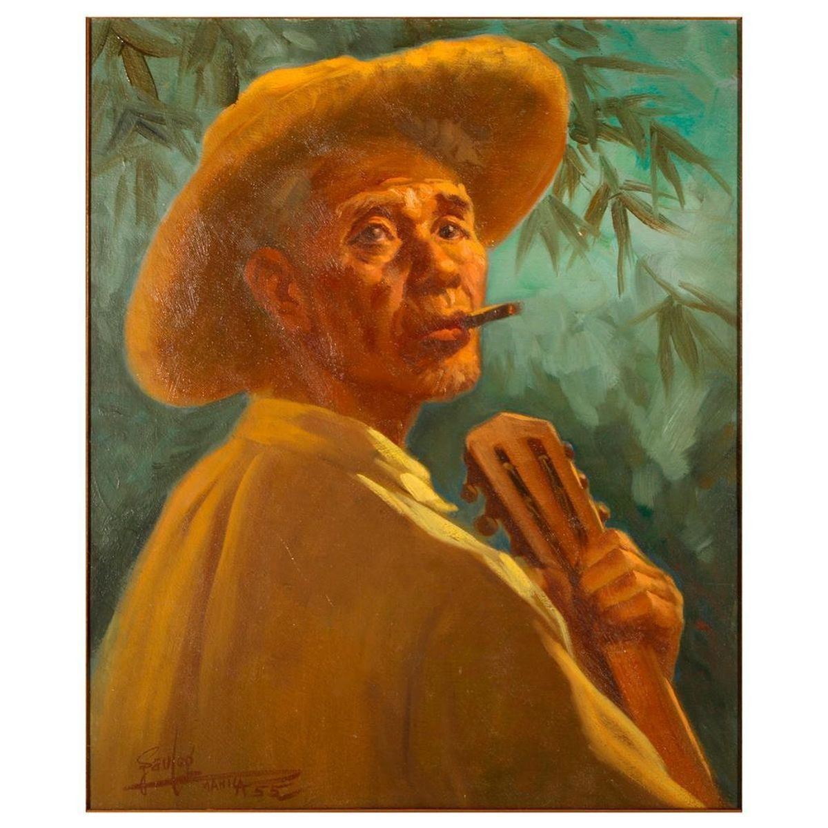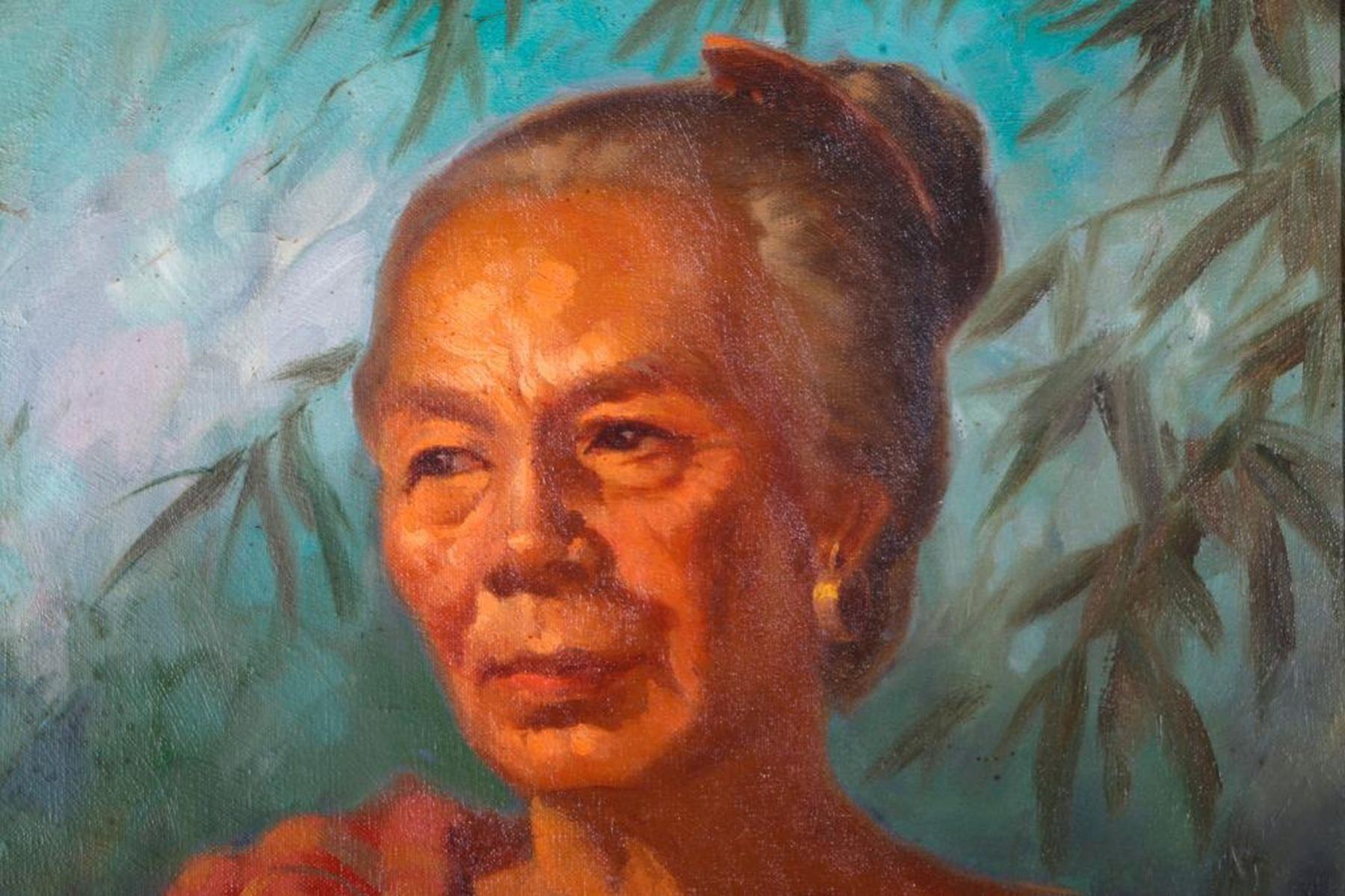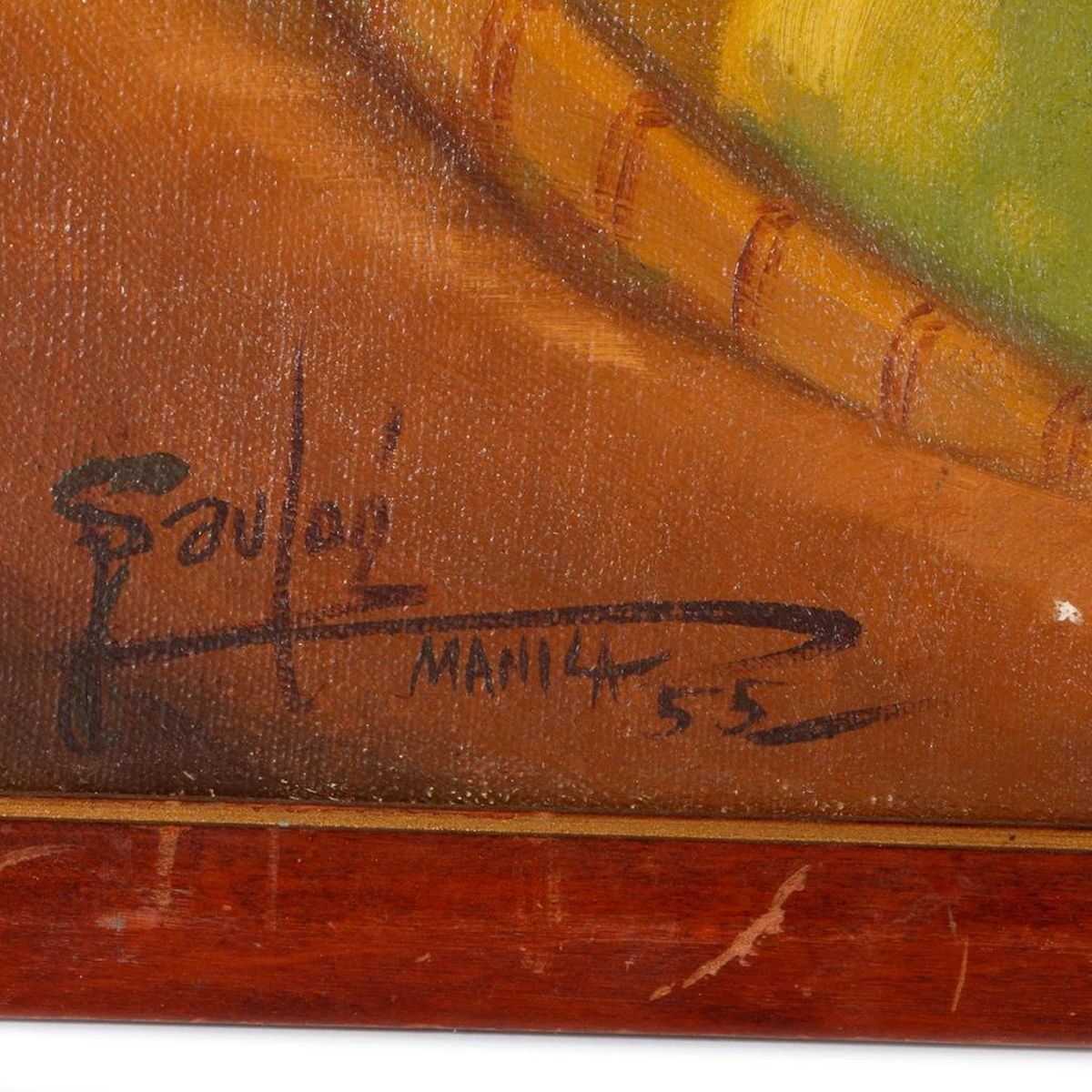 Artist: Simon Saulog (1915 - 1995). Subject/Title: Pair of portraits of a Filipino man and woman. Date Created: 1955. Medium: Oil on canvas. Size Image: 22 inches high x 18. Size Frame: 23 1/2 inches high x 19 3/4. Condition: Good.