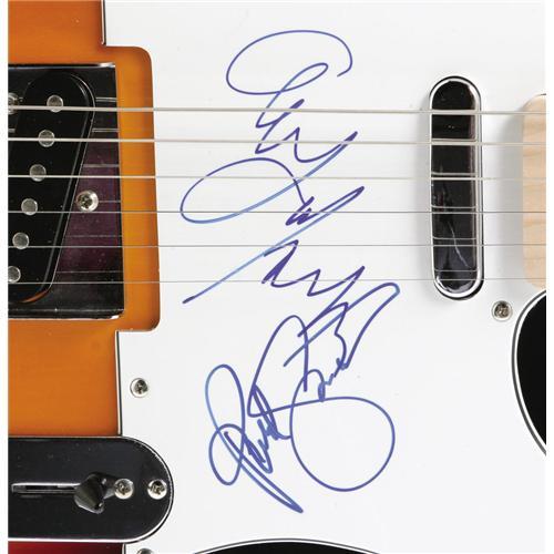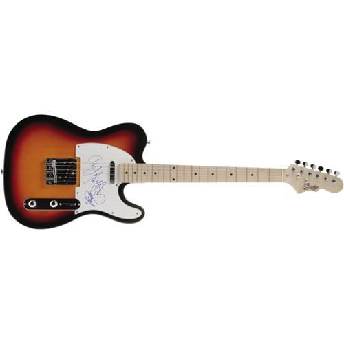 <B>Simon and Garfunkle Autographed Guitar.</B></I> A Copley six-string electric guitar with sunburst pattern, signed by Paul Simon and Art Garfunkle in blue marker on the pick guard. In Excellent condition.<BR><BR><b>Shipping:</b> Musical Instruments, Large (<a target="_blank" href="http://www.heritageauctions.com/common/shipping.php">view shipping information</a>)