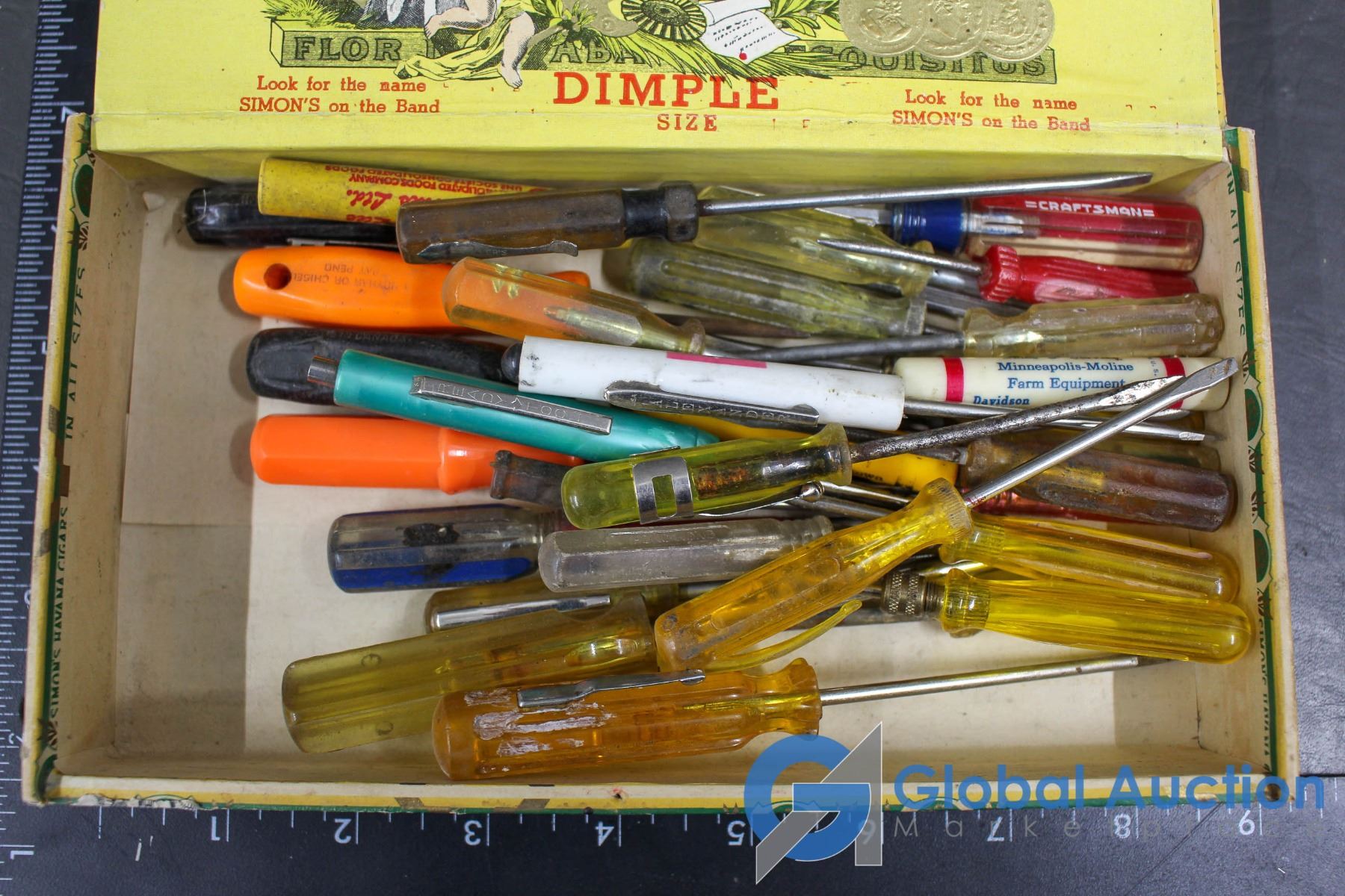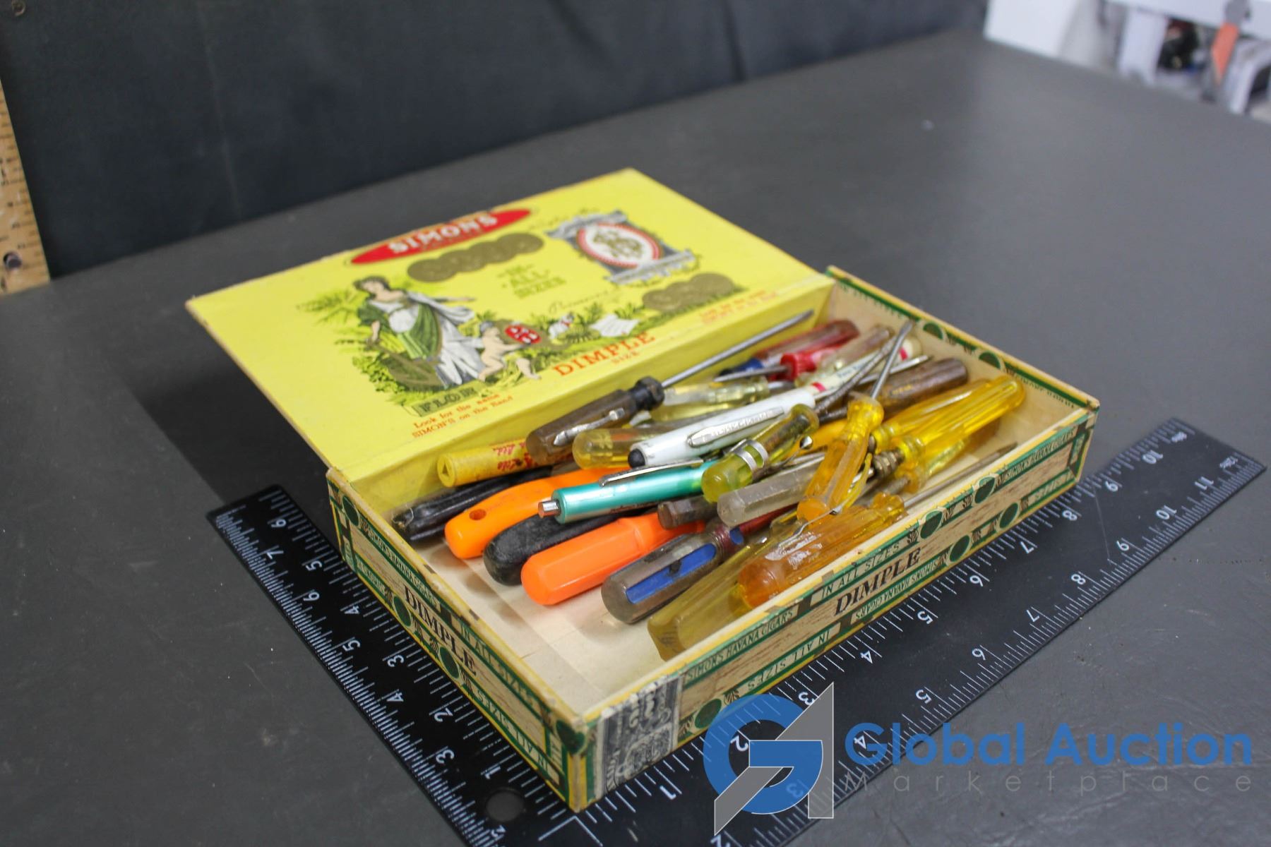 Simon's Cigar Box & Assortment of Mini Screw Drivers