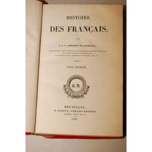 Simonde De Sismondi, J.C.L.. Histoire Des Francais - Complete in 22 Volumes . Bruxelles: H. Dumont, . 8vo - over 7¾" - 9¾" tall. Hard Cover. Ex-Library. Fair Condition. 1836-1846. Bound in 3/4 leather & paper, raised bands on spines, decorative endpapers. Some covers detached, lacks some backstrips, bindings tight. Text in French.