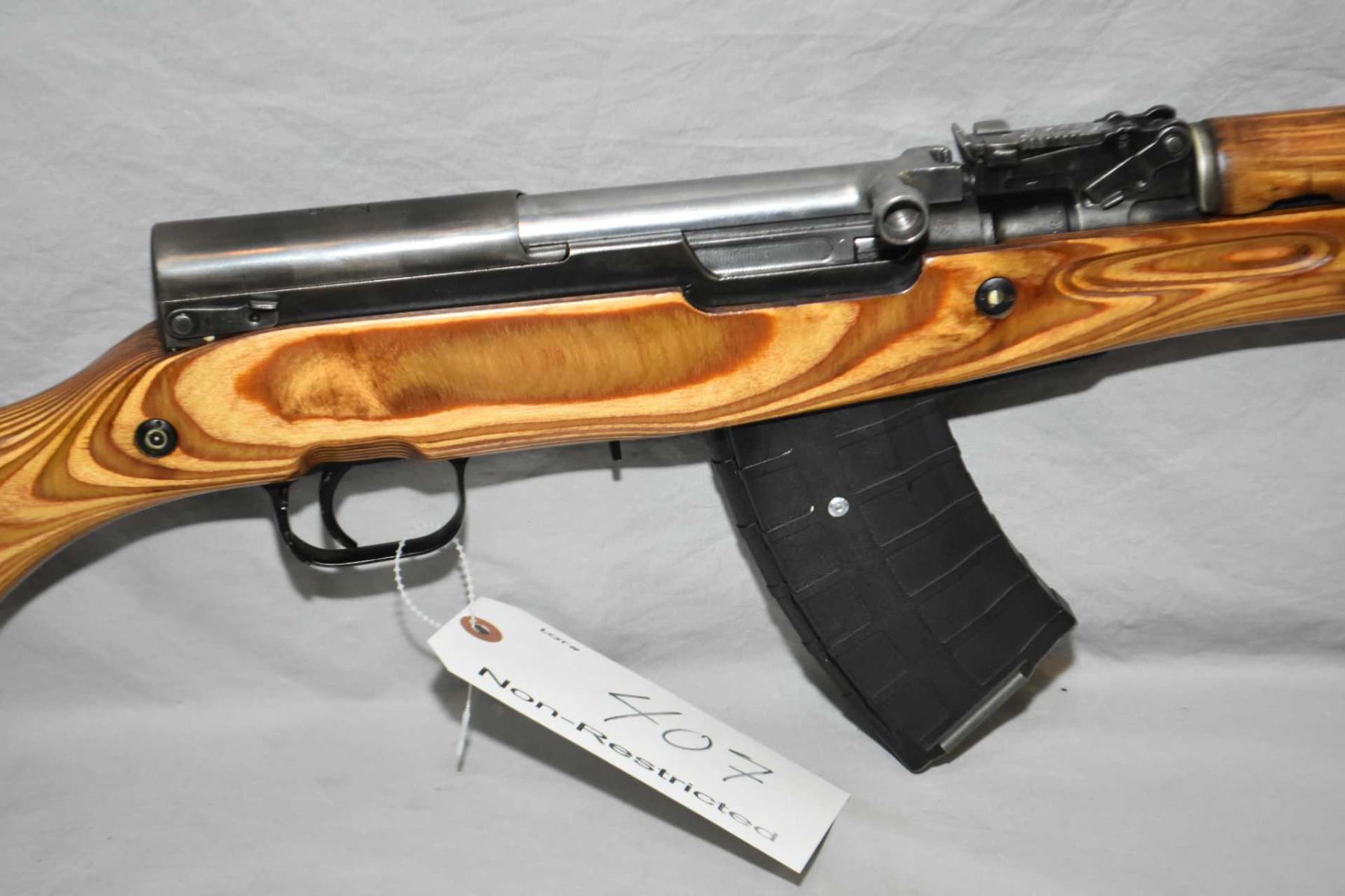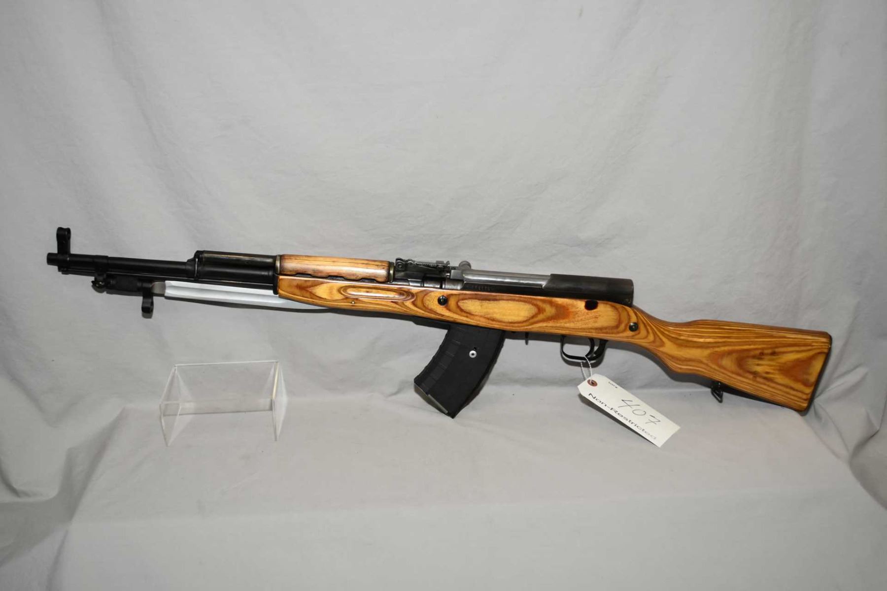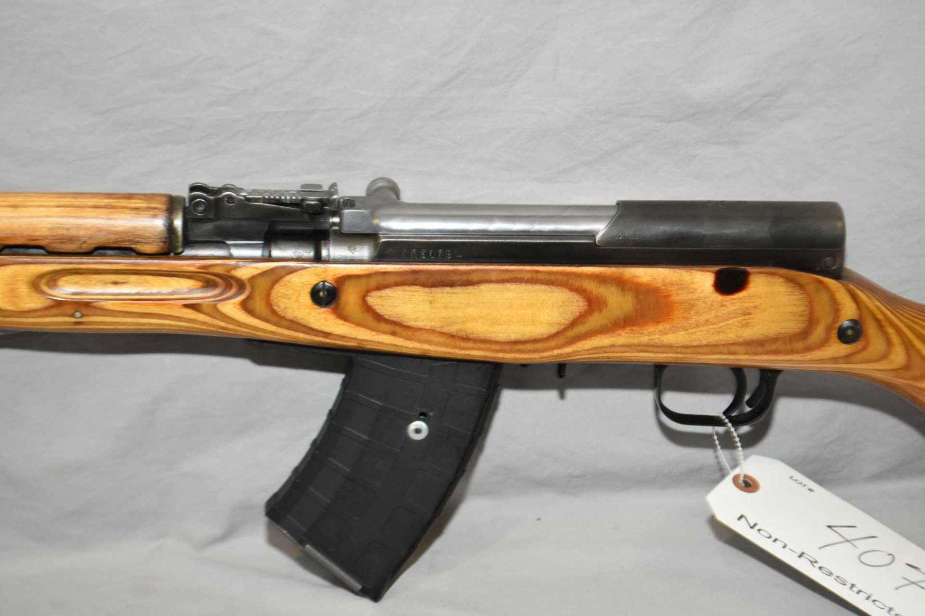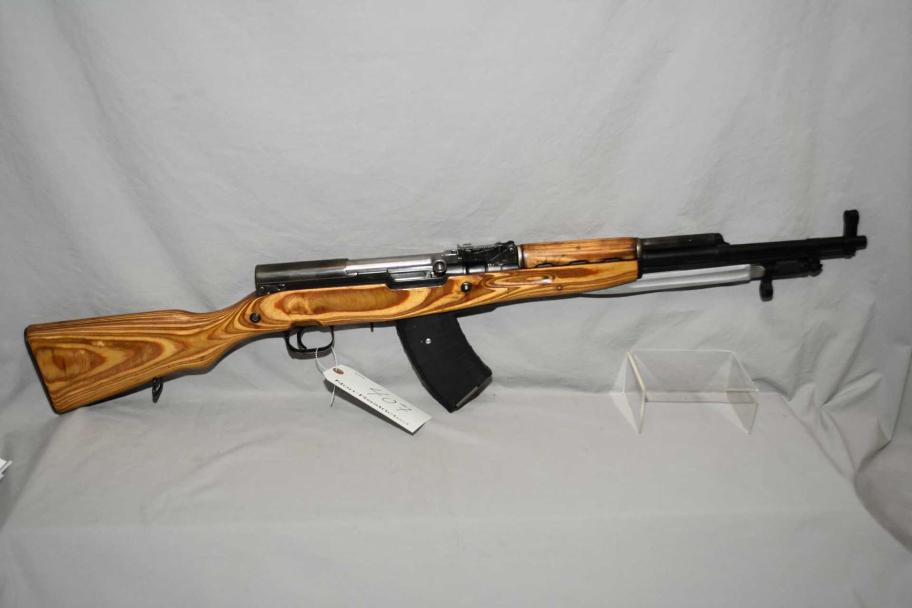 Simonov ( Russian State Tula ) Model SKS Dated 1953 7.62 x 39 Cal Mag Fed Semi Auto Full Wood Military Rifle w/ 520 mm bbl [ blued finish starting to fade, barrel sights, attached folding bayonet, with cleaning rod, sling swivels, pinned mag, laminated stock , some marks ] Ser # KA5179L