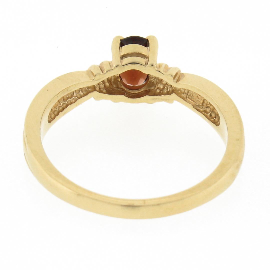 Simple 14K Yellow Gold Oval Prong Set Garnet w/ Grooved Sides Solitaire Ring