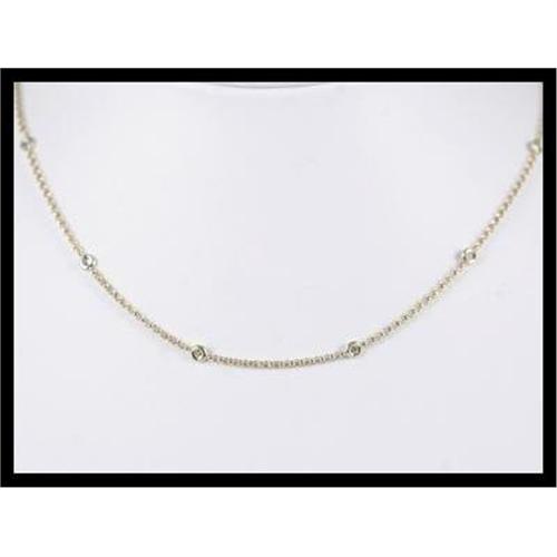 Simple necklace with 8 diamonds that weigh 0.30 carats set in 18K yellow gold. The necklace measures 16 inches long and weighs 3.40 grams total weight.