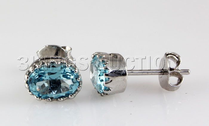 Simple 9.41CTW Stud Blue Zircon Silver Earring **|**|** Simple Sky Blue Stud Silver Oval Earring; Size: 8x6mm; ctw: 4.00; stone count: 2; gram weight: 1.08 ; MSRP: $400