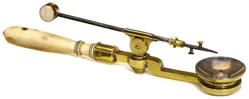 Simple Microscope, c. 1760 Brass, ivory grip, lens with Lieberkühn reflector, tweezers, length 5 in.<Br>