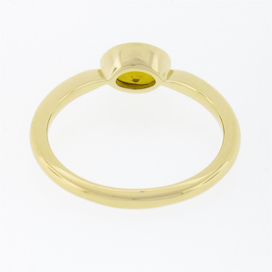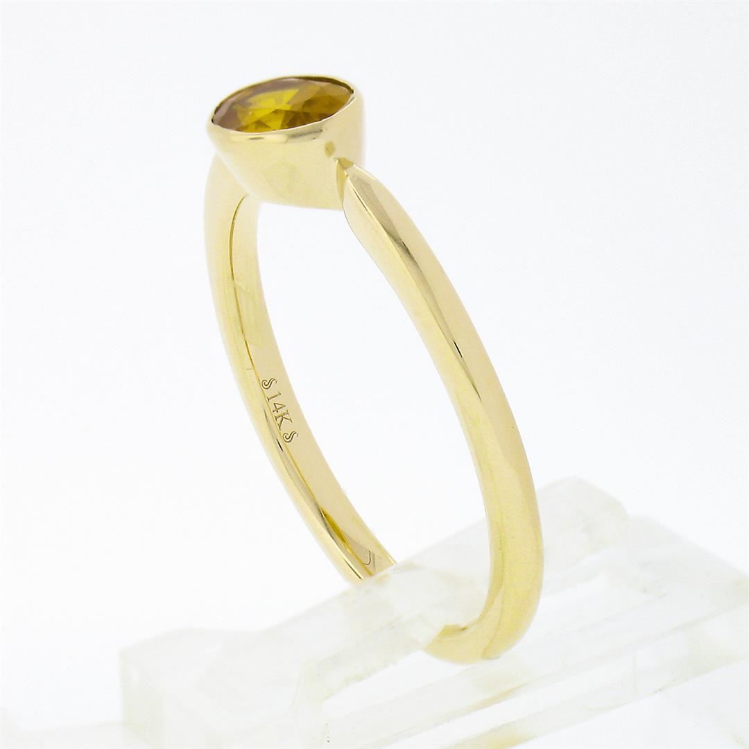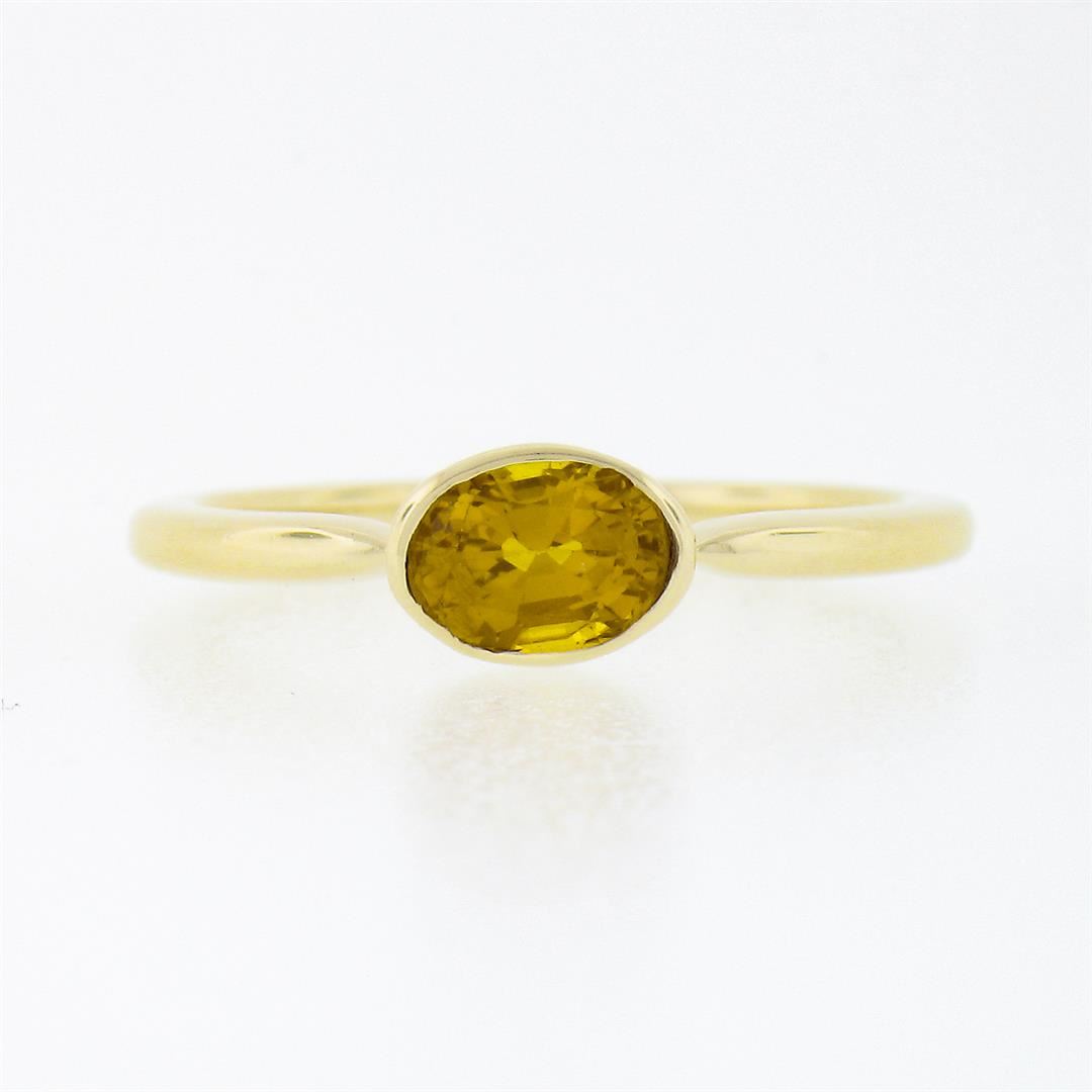 A solid 14k yellow gold solitaire ring, with 1 oval cut natural yellow sapphire (6.4x4.5mm - 0.70ct). The ring is size 7.0, weighs a total of 2.44 grams, and measures 5.25mm wide.