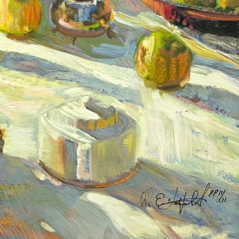 "Simple Pleasures" is a limited edition publisher's proof on canvas by Don Hatfield, numbered 11/11 and hand signed by the artist. Includes Letter of Authenticity. Measures approx. 30.5" x 28" (image).
