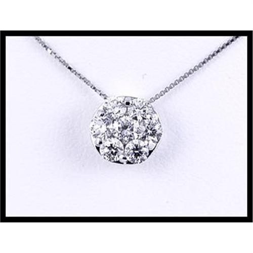 Simple and sparkling pendant with 7 full cut diamonds that weigh 0.80 carats set in 14K white gold. The pendant measures 8.4 millimeters (0.33 inches) in diameter and weighs 9 grams total weight.