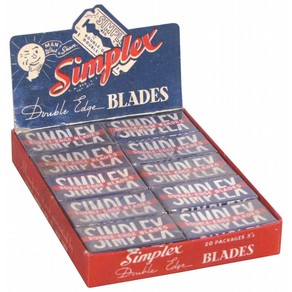 Simplex Double Edge Blades Cardboard Store Display with product. Excellent condition. 4 X 5 1/2 inches.