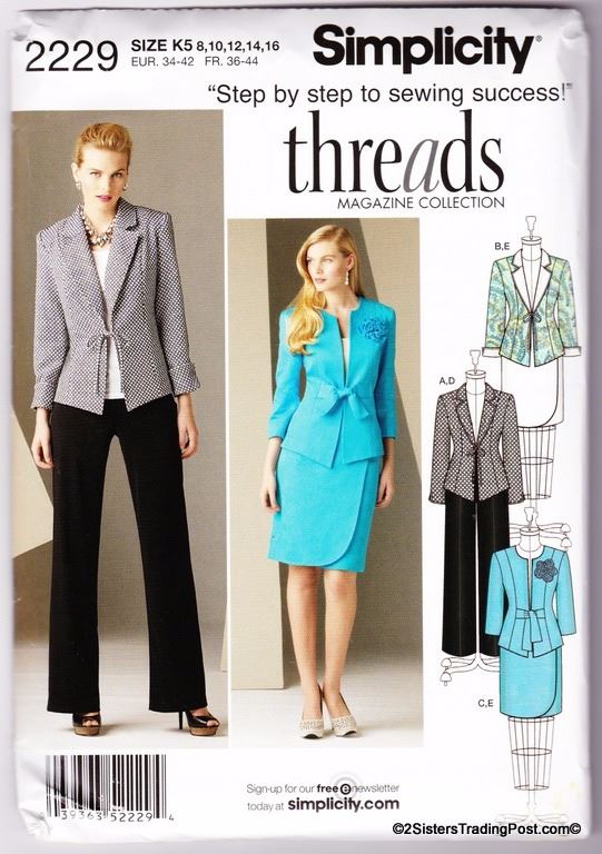 Simplicity 'step by step to sewing success' threads magazine collection, misses'/miss petite jacket, pants and skirt. Pattern #2229 Size K5 8-10-12-14-16 MSRP $17.95