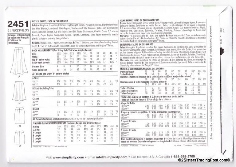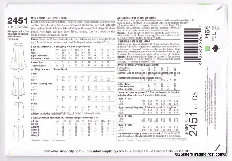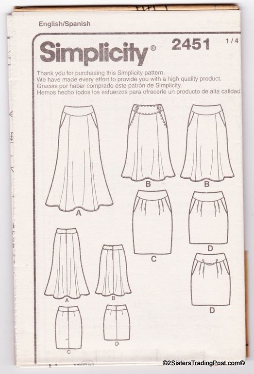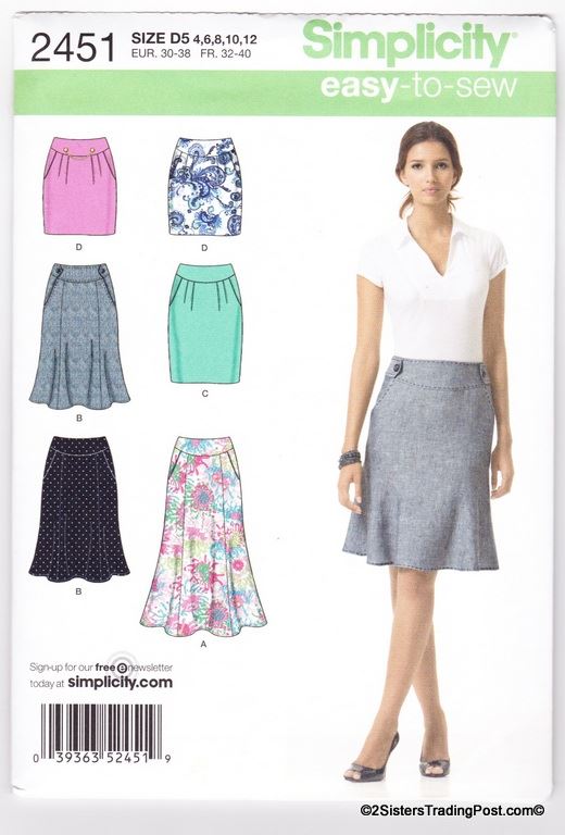 Simplicity easy-to-sew slim and flared skirts each in two lengths. Pattern #2257 Size K5 8-10-12-14-18 MSRP $15.95