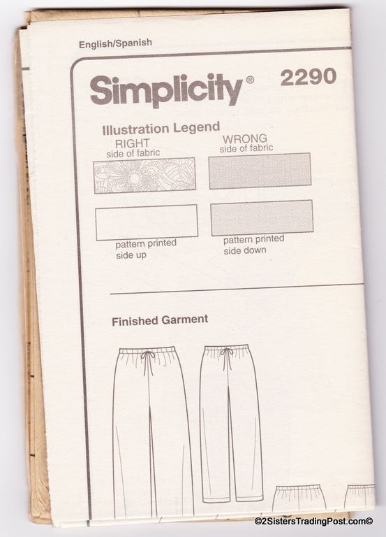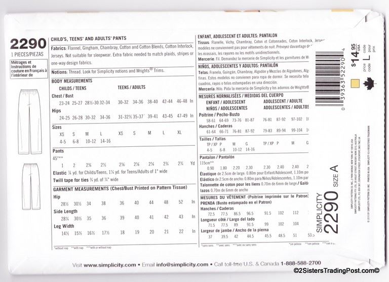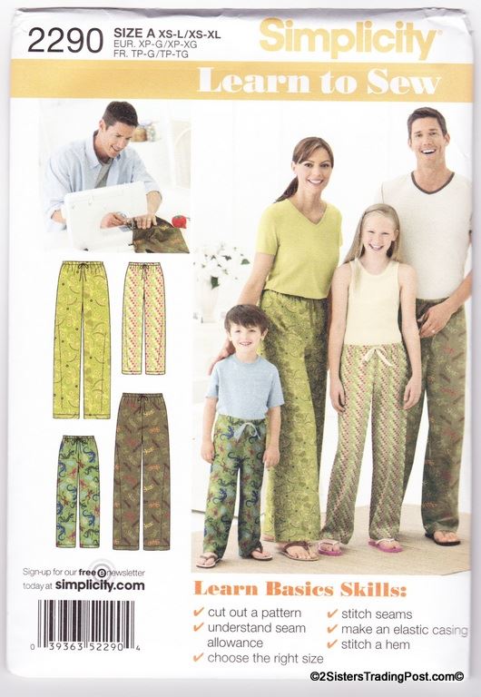 Simplicity Learn to Sew child's, teens' and adults' pants. Pattern #2290 Size A XS-L/XS-XL MSRP $14.95